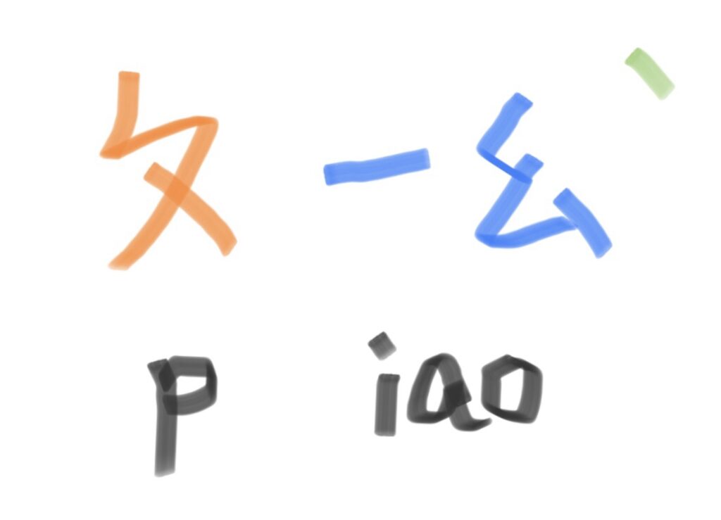 日本語のローマ字表記や、ピンインに近い考え方ですが、注音ではそれぞれの音に専用の記号が割り当てられているのが特徴です。
